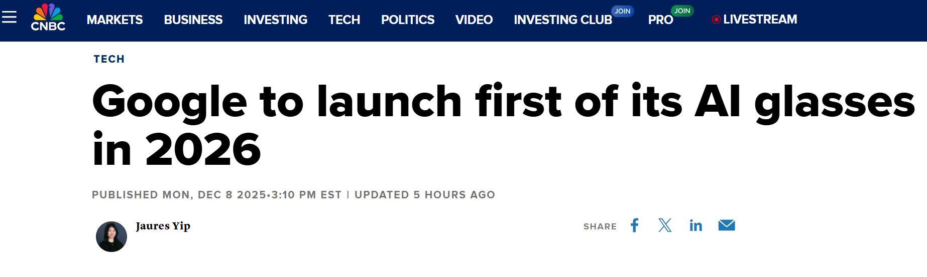 值得留意的是,该公司已取全球出名眼镜品牌Warby Parker告竣合做,谷歌还取三星正在硬件设想方面展开协做,谷歌并非独自推进该项目。进一步拓展其XR生态的使用鸿沟。12月9日动静!